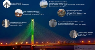 - висота пілону 135 м, це найвищий діючий міст в Україні;