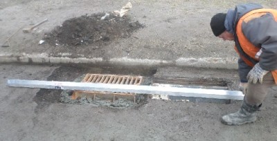 В процесі огляду споруд зливової каналізації дорожники виявляють пошкоджені решітки зливоприймачів та виконують їх ремонт або, за потребою, заміну. Нові решітки, які встановлюють на заміну пошкодженим, це новий тип решіток ДБ-1 із замикаючими пристроями, що запобігають гуркоту, їхньому зміщенню та викраданню.