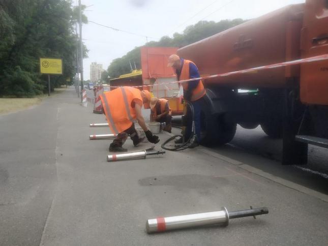 На бульварі Дружби Народів встановлюють антипаркувальні стовпчики. Тут вже встановлено 687 штук, ще близько півсотні продовжують монтувати.
