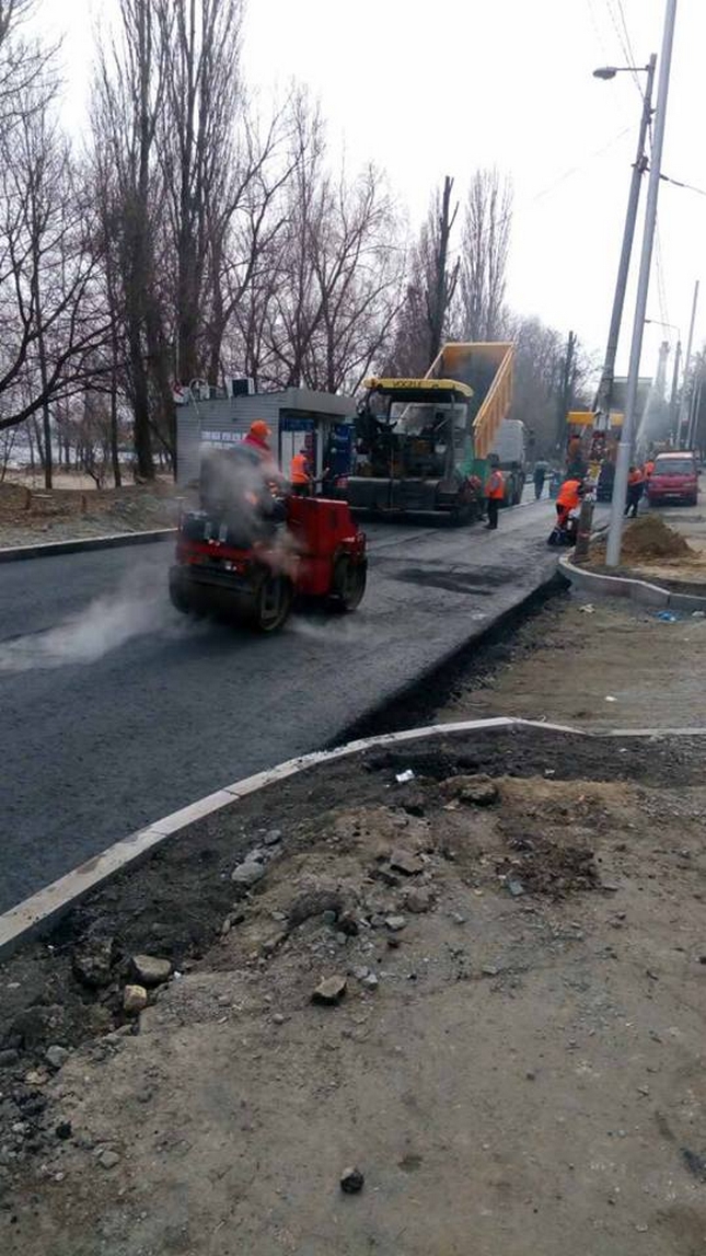 Сьогодні дорожники влаштовують нижній шар асфальтобетонного покриття. Нагадаємо, що на об’єкті вже завершені роботи з влаштування зливової каналізації і встановлення бордюрного каменю.