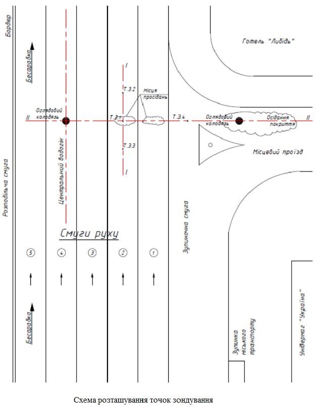 Так після улаштування верхнього шару асфальтобетонного покриття, на глибині орієнтовно 2м від верху дорожнього одягу на водопровідній мережі, що належить ПАТ «Київводоканал» в результаті пориву труби виникла течія, в наслідок якої в процесі просочування води в грунт, було розущільнено шари основи дорожнього одягу, що в свою чергу привело до просідань верхнього шару асфальтобетонного покриття.