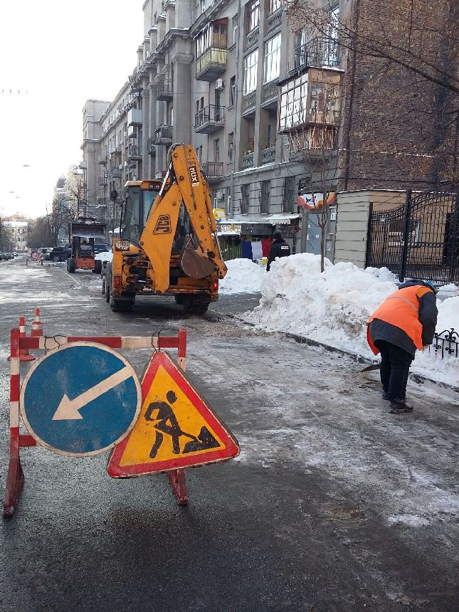 Впродовж вихідних підприємства комунальної корпорації «Київавтодор» в інтенсивному режимі продовжували роботи з очищення вулично-дорожньої мережі столиці від снігу, зокрема проводились роботи з очищення та розширення проїзної частин доріг, тротуарів, заїзних "кишень" тощо. Такі роботи проходили на вул. Вишгородській, вул. Сабурова, вул. Радунській, просп. Бажана, вул. Ревуцького, вул. Мечникова, бульварі Лесі Українки, вул. Костянтинівській, вул. Народного Ополчення, вул. Володимирській, вул. Гоголівській тощо. Загалом протягом 2-х днів з вулично-дорожньої мережі Києва було вивезено 5076,1 т снігу.