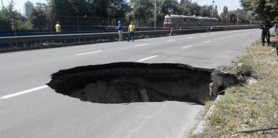 Провал дорожнього покриття на вул. Борщагівській