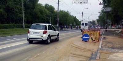Провал дорожнього покриття на вулиці Фрунзе в районі буд.113
