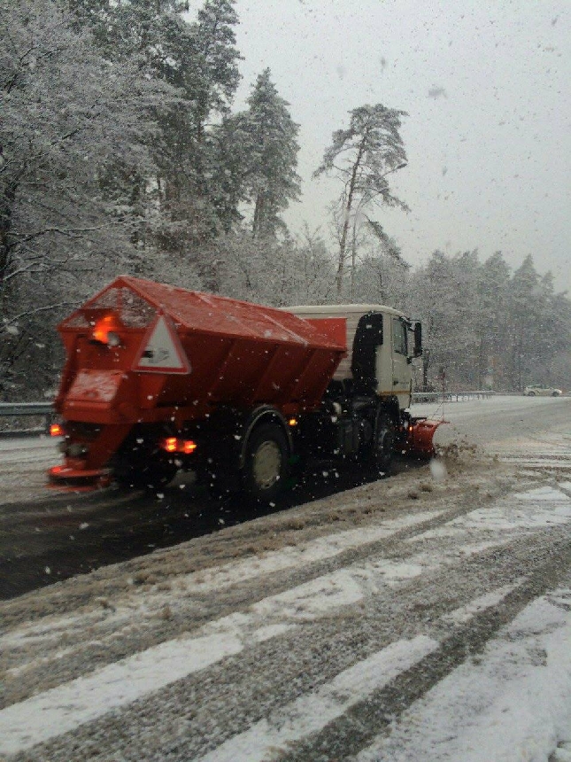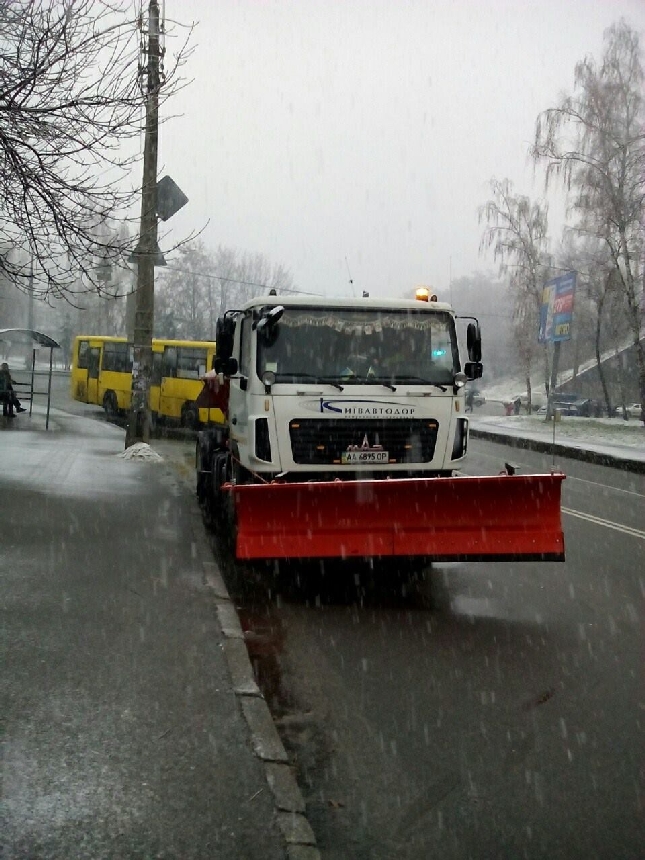 Робота спеціальних машин підприємств корпорації «Київавтодор» з обробки та очищення дорожнього покриття.