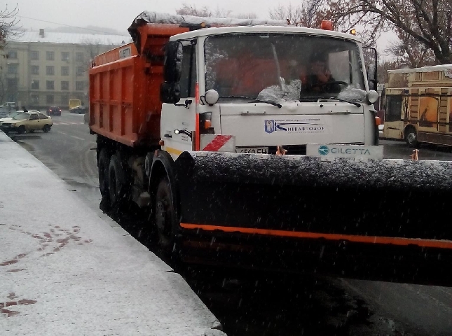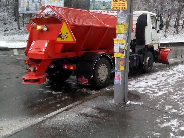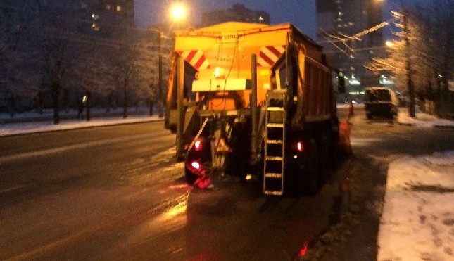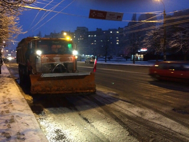 Робота спецтехніки комунальної корпорації "Київавтодор" на вулицях Києва 29.11.2015р.