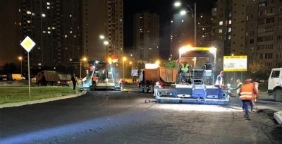 Минулої ночі влаштовано покриття кільцевої розв’язки на перетині вулиць Милославської і Радунської (близько 3500 м2).
