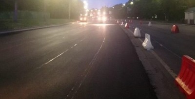 Сьогодні вночі на вул. Олени Теліги дорожники вже завершили влаштування верхнього шару покриття на ділянці від вул. Ольжича до вул. Кирилівської.
