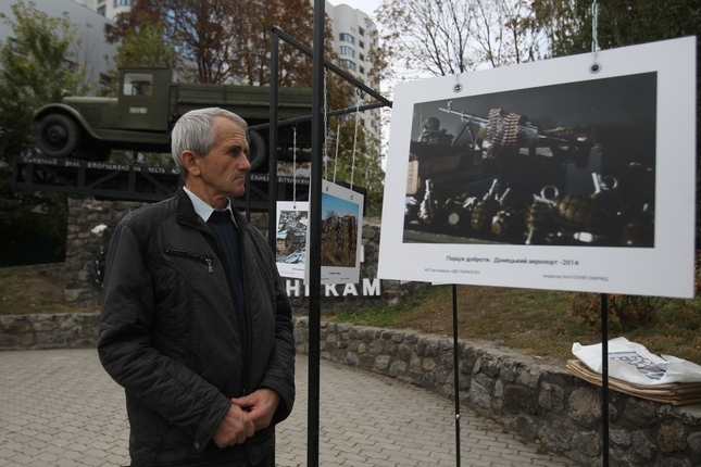 На урочистостях ГО «Серця Кіборгів» представили фотовиставку. В експозиції – більше 20 світлин зроблених самими військовими під час оборони Донецького аеропорту.