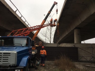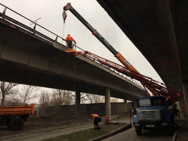 Триває демонтаж аварійних карнизних блоків на естакаді Південного мостового переходу