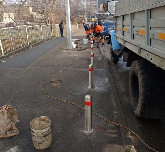 Триває робота зі встановлення антипаркувальних стовпчиків