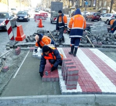 Цього року в столиці продовжуватиметься влаштування переходів з кольорової бруківки червоно-білого кольору