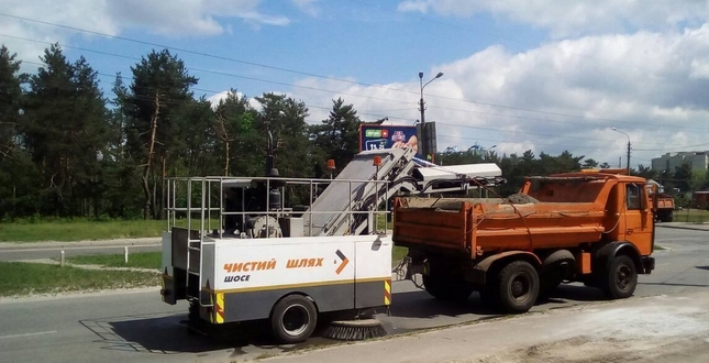 На сьогоднішній день шляхово-експлуатаційне підприємство Дніпровського району випробовує вітчизняний аналог виробництва ПАТ «Кроківський вагонобудівний завод» – підмітально-прибиральну машину «Чистий шлях», котру виробник надав безкоштовно на місячний «тест-драйв».