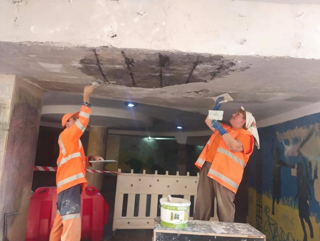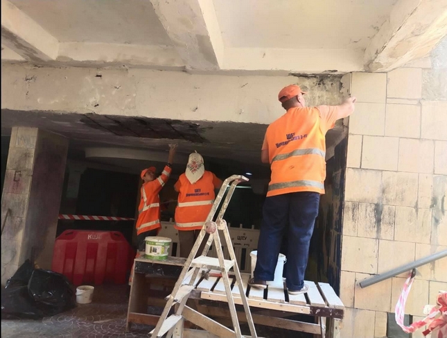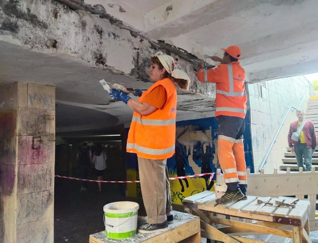 У підземному переході на Європейській площі працівники КП ШЕУ Шевченківського району проводять ремонтні роботи. Вони тривають кілька днів.