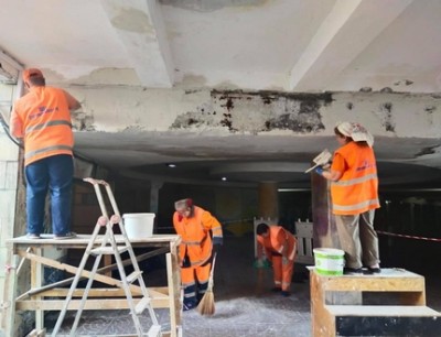 У ході робіт знімається старий захисний шар бетону, а також штукатурка. Роботи - планові.