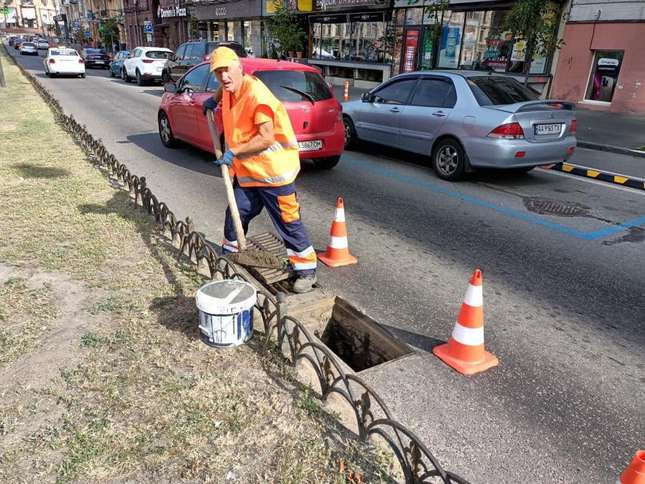 За прогнозами синоптиків у Києві та області можлива гроза. У місті посилено працюють гідрослужби. Зокрема, дорожня служба додатково очищає дощоприймальні колодязі й решітки зливостоків у місцях можливих підтоплень.