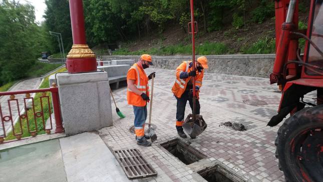 Щодня ми прочищаємо зливостоки від сміття. На місця, які можуть підтоплюватись, спецтехніка і бригади виїжджають заздалегідь до початку опадів. Уже зараз робота розпочалась біля станції метро «Лівобережна».