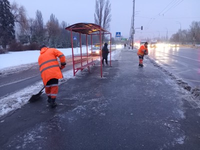 Також задіяні 487 працівників у складі 67 бригад із ручного прибирання. Дорожники очищають від снігу та обробляють протиожеледними засобами зупинки, вузькі тротуари, сходи, острівці безпеки, пішохідні переходи.