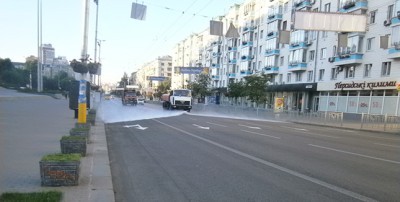 Так, протягом вихідних у дві зміни в цілодобовому режимі на дорогах Києва працювали 53 поливомиючі машини. Для поливу було використано 3292 куб.м води.