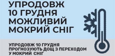 УПРОДОВЖ 10 ГРУДНЯ МОЖЛИВИЙ МОКРИЙ СНІГ