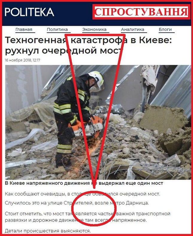 На сайті одного інтернет-видання з’явилася інформація про начебто «техногенну катастрофу» і руйнацію мосту на вул. Будівельників.