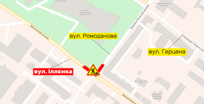 НА РОЗІ ВУЛИЦЬ ІЛЛЄНКА І РОМОДАНОВА ЧАСТКОВО ОБМЕЖАТЬ РУХ