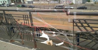 На поширених в ЗМІ інформації щодо аварійного стану мостової споруди біля Привокзальної площі, а також проведеного ремонту перильного огородження з використанням скотчу та ниток (на фото), яке розташоване на цій споруді, підприємство «Київавтошляхміст» повідомляє наступне.