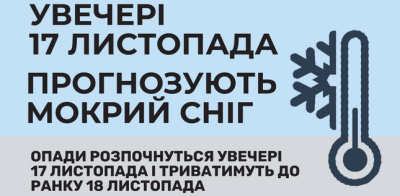 УВЕЧЕРІ 17 ЛИСТОПАДА ПРОГНОЗУЮТЬ МОКРИЙ СНІГ!