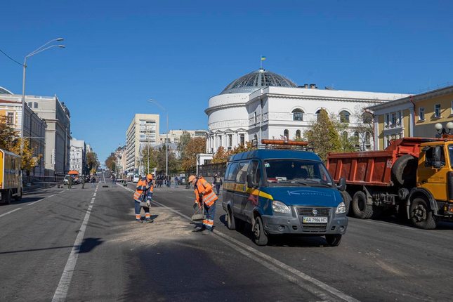 Віталій Кличко: "Дякую столичним комунальникам та всім службам, які оперативно ліквідовували наслідки та відновлювали пошкоджену інфраструктуру після ракетної атаки російських варварів на Київ 10 жовтня"