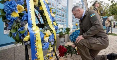 У День Захисників і Захисниць України поклав квіти до Стіни пам’ яті біля Михайлівського Золотоверхого собору та зустрівся з дружинами і матерями полеглих воїнів.