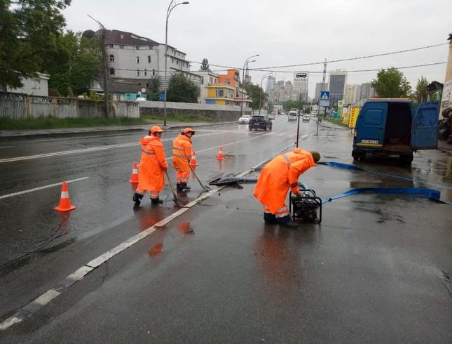 До початку опадів наша техніка виїхала на проблемні місця. Зокрема, тунель біля станції метро «Дорогожичі», вул. Маккейна, зону біля станції метро «Лівобережна», вул. Брожка.