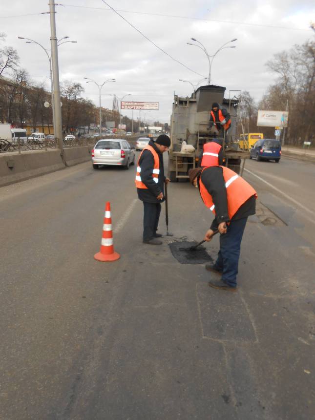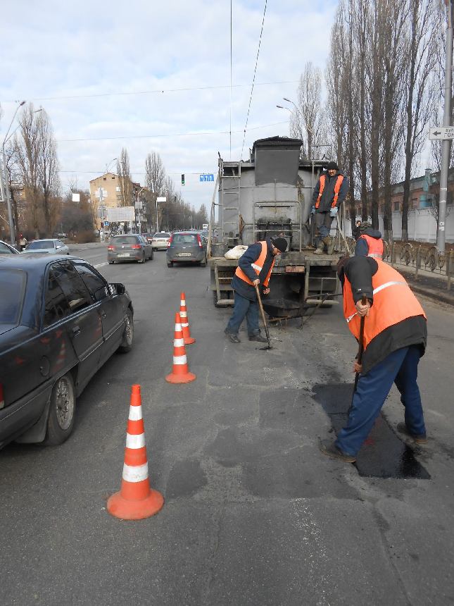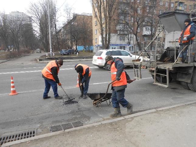 Враховуючи сприятливі погодні умови, КП ШЕУ Шевченківського району комунальної корпорації «Київавтодор» продовжуює проводити роботи з ліквідації аварійно-небезпечної ямковості вулично-дорожньої мережі району