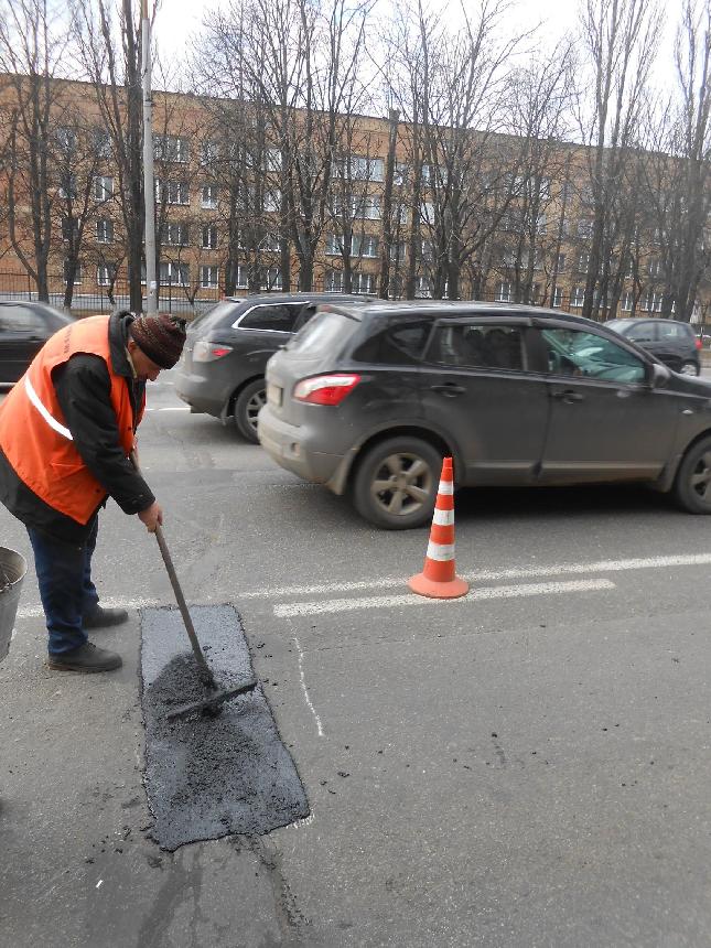 Так, 9 лютого 2016 року такі роботи було проведено на ділянках проїзної частини вул. Теліги, площа відремонтованого покриття 35,0 м2 . Ремонтні роботи проводилися із застосуванням литої гарячої асфальтобетонної суміші. Наразі продовжуються ремонтні роботи на проїзній частині вул.Теліги, вул.Терещенківській, вул. Січових Стрільців.