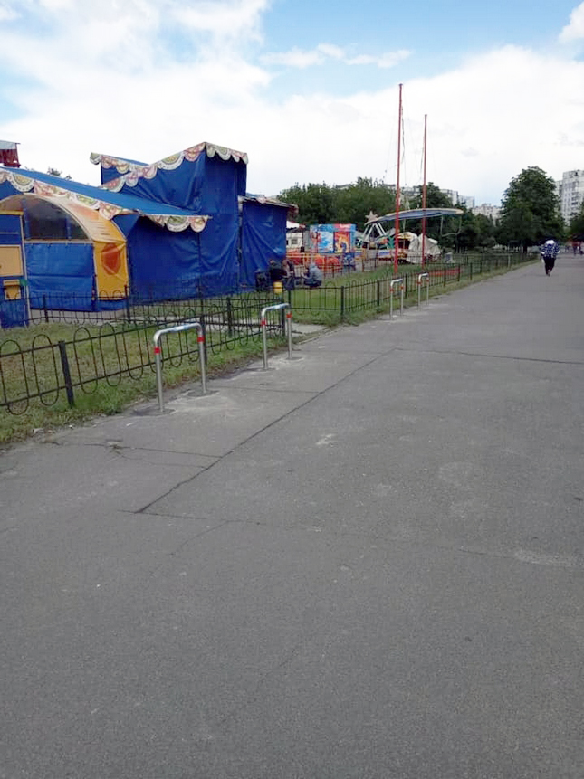 Стійки такої форми - функціональні. Також слугують, антипаркувальними засобами для тротуарів.