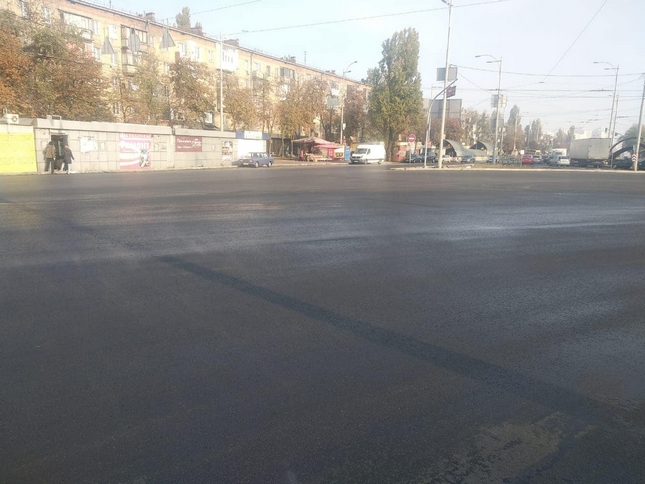 У ніч проти суботи і ніч проти неділі на Дарницькій площі активно працювали дорожники. Влаштовували верхній шар асфальтового покриття.