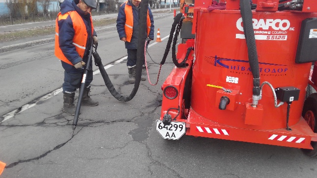 Також автодорівці продовжили роботи з заливки швів та тріщин дорожнього покриття. 25 лютого такі роботи тривали на просп. Лобановського, вул. Липківського, Харківському шосе на ділянці від вул. Симферопольської до вул. Здолбунівської.