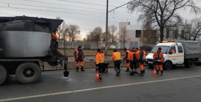 Завдяки сприятливим погодним умовам дорожники розпочали поточні ремонти покриття. Роботи тривають цілодобово у всіх районах столиці.