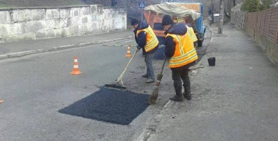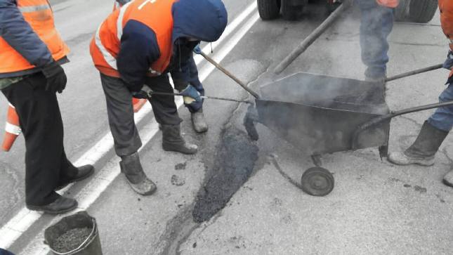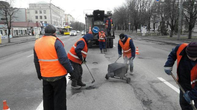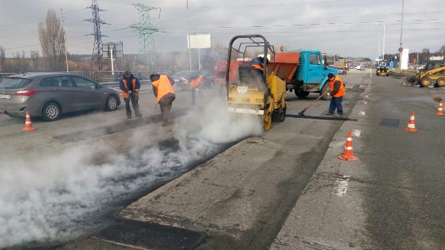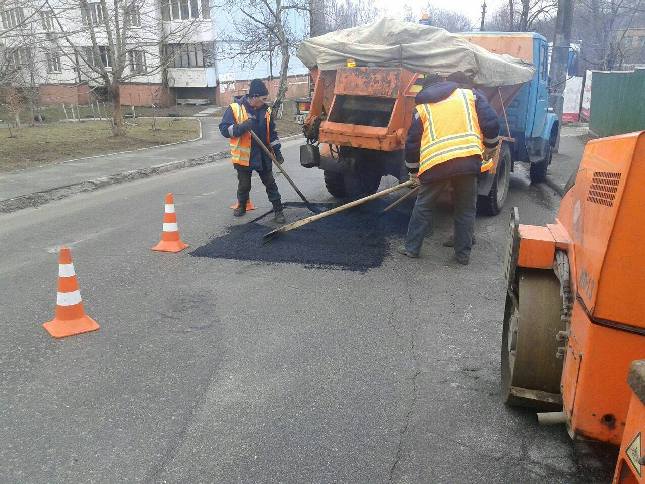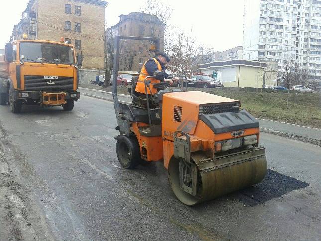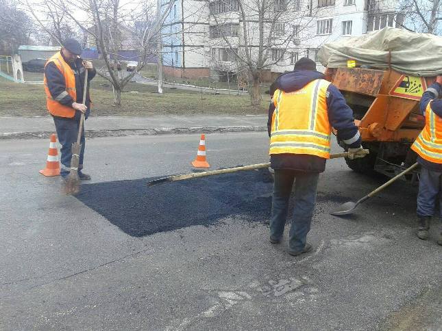 Зважаючи на сприятліві погодні умови, у суботу, 27 лютого, в усіх районах столиці дорожники активно проводили роботи з ліквідації аварійно-небезпечних руйнувань вулично-дорожньої мережі за допомогою гарачих та литих асфальтобетонних сумішей